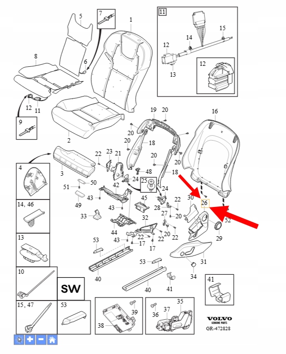 OSŁONA FOTELA LEWY PRZÓD VOLVO XC90 2016- XC60 V90 S90 OEM/OE 31467137