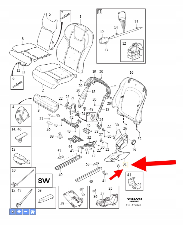 OSŁONA FOTELA LEWY PRZÓD VOLVO XC90 2016- XC60 V90 S90 OEM/OE 39831630