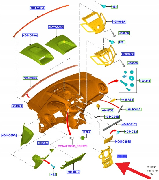 OSŁONA KONSOLI ŚRODKOWEJ FORD FIESTA 2012- OE 2036618 _ C1BB-18D422-ED3BL8
