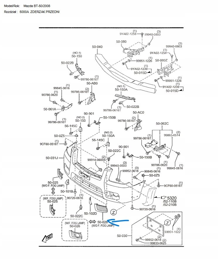 Osłona lampy lewej przedniej - Mazda BT-50_UB9B50C21