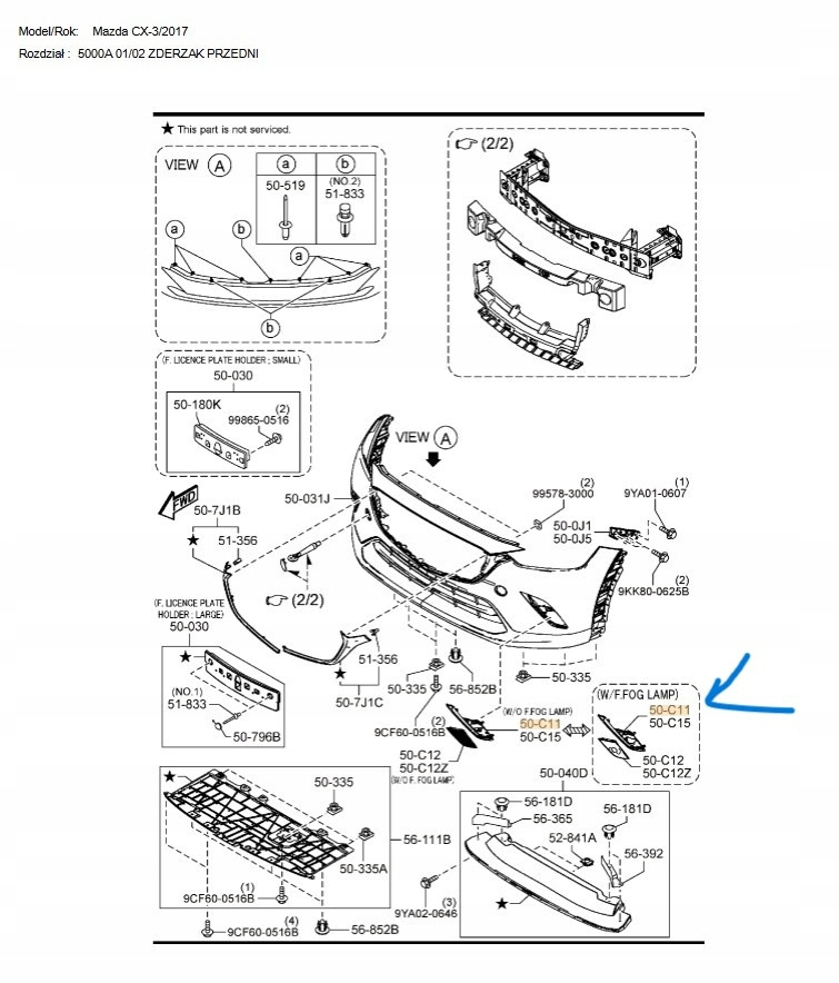 Osłona prawa lampy przeciwmgielnej - Mazda CX-3 DK_D10J50C11