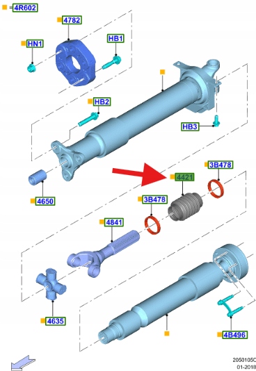 Osłona wału napędowego tylnego - 5.0L V8, manual MT82