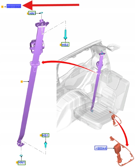 PAS BEZPIECZEŃSTWA 3 RZĄD FORD GALAXY 2015- OE 2433474 _ EM2B-U611B51-AJ3Z
