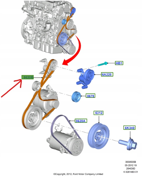 PASEK KLINOWY 2.0 2.5 FORD MONDEO Mk5 S-MAX GALAXY 2366686 _ DA8E-6C301-EA