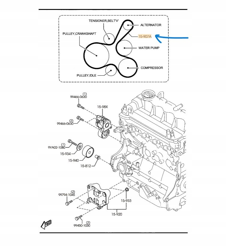 Pasek wielorowkowy - Mazda 3 BL Mazda 6 GH_R2AA15909A