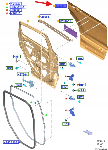 PŁYTA DRZWI ZEWNĘTRZNA PRAWA STRONA- TYŁ KUGA MK2 2290955 _ DV44-S24704-AB