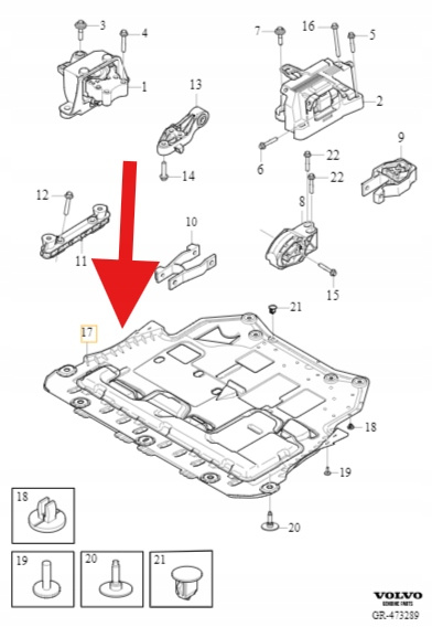 PŁYTA OSŁONA POD SILNIK 1.5 B3 VOLVO XC40 2018- OE 32241049