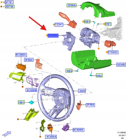 PŁYTKA STYKOWA POD KIEROWNICĘ FORD MUSTANG EDGE 2452655 _ EG9T-14A664-AB