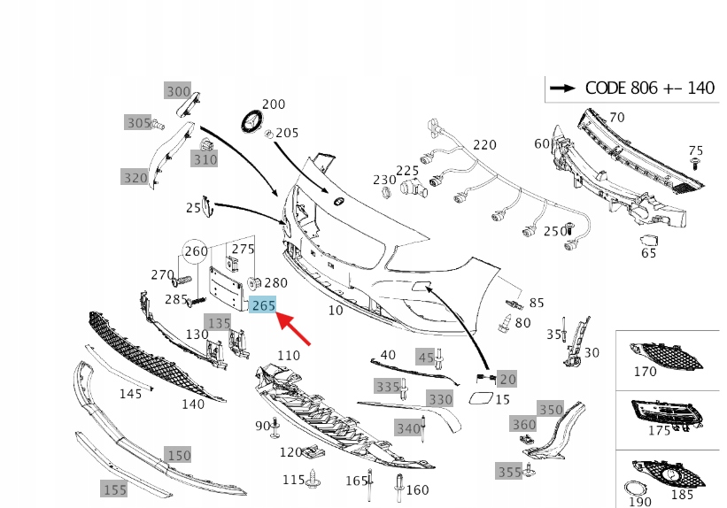 PODKŁADKA TABLICY REJESTRACYJNEJ PRZÓD MERCEDES A klasa W176 OE A1768850181