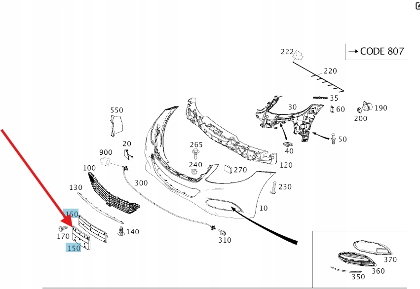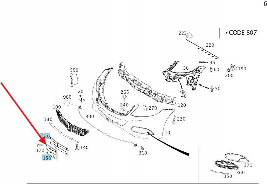 PODKŁADKA UCHWYT TABLICY REJESTRACYJNEJ PRZÓD MERCEDES S W222 A2228850081