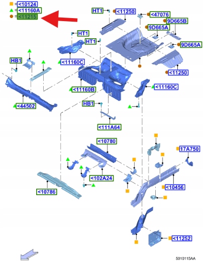 PODŁOGA TYLNA FORD MUSTANG MK6 MK7 2015- 2023- OE 1909537 _ FR3B-6311215-AE