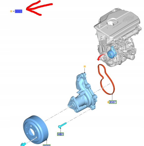 POMPA WODY FORD FOCUS KUGA PUMA FIESTA 18- 1.5 EB _ 2645271 _ HX7G-8501-BA