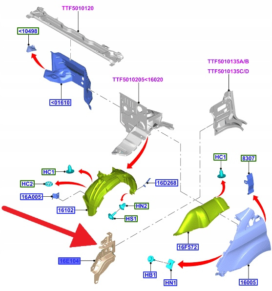 POSZYCIE BŁOTNIKA LEWY PRZÓD FORD CUSTOM 2012- OE 2394228 _ KK21-16E105-AB