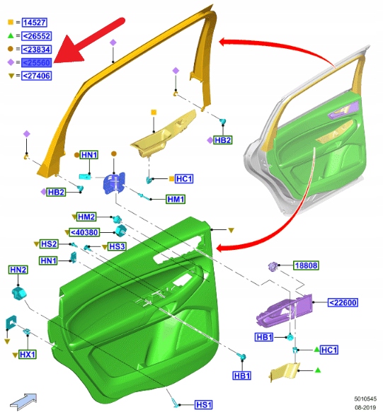 POSZYCIE RAMY SZYBY DRZWI TYŁ S-MAX 2015- OE 2450429 _ EM2B-R25515-BL3JA6