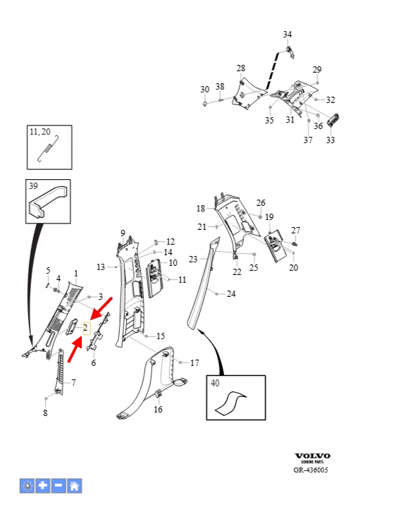PRAWA KRATKA NAWIEWU SŁUPEK A VOLVO XC90 2016- V90 S90 OEM/OE 39829958