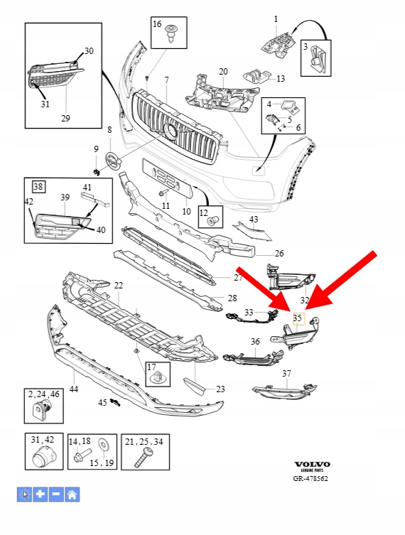 PRAWA KRATKA ZDERZAKA PRZÓD VOLVO XC90 2016-2019 OEM/OE 31455202