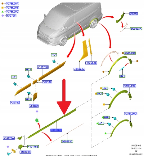 PRAWA LISTWA PROGU FORD TRANSIT CUSTOM 18- OE 2383654 _ JK2V-V10154-BAPRAA