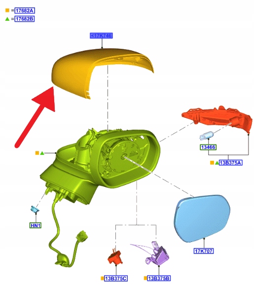 PRAWA OBUDOWA LUSTERKA FORD FIESTA 2017- OE 2517256 _ L1TB-17K746-AAZJAC