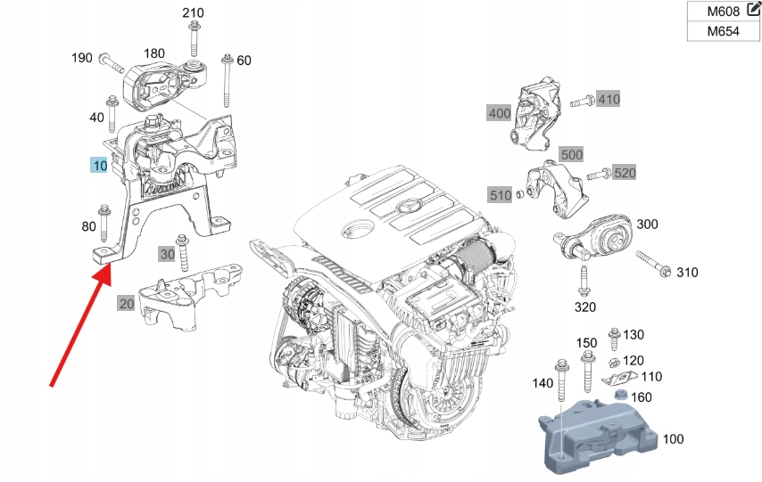 PRAWA PODUSZKA ŁAPA SILNIKA D M654 MERCEDES W118 W177 W247 OE A2472402000