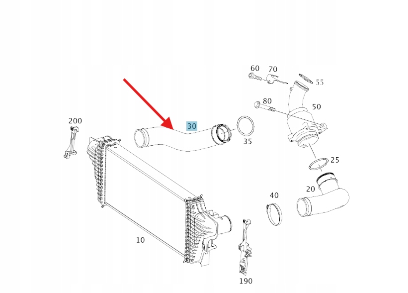 PRAWA RURA WĄŻ INTERCOOLERA MERCEDES R W251 OE A2515280382