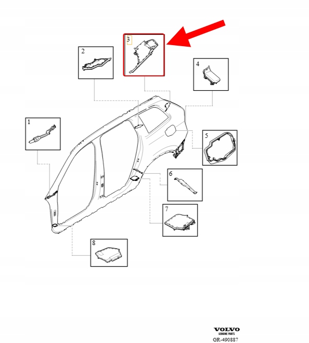 PRAWA USZCZELKA SŁUPKA D GÓRA TYŁ VOLVO XC90 2016- OEM/OE 31688971