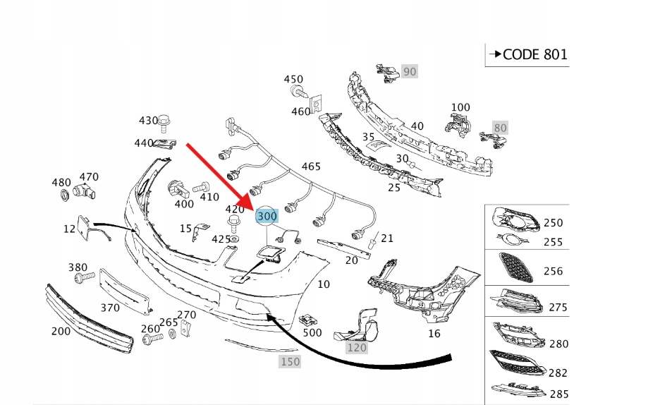 PRAWA ZAŚLEPKA SPRYSKIWACZA ZDERZAKA PRZÓD MERCEDES C W204 OE A2048802024