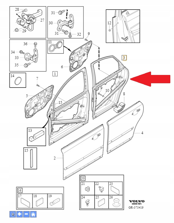 - Prawe tylne drzwi Volvo V50 OE 31335470