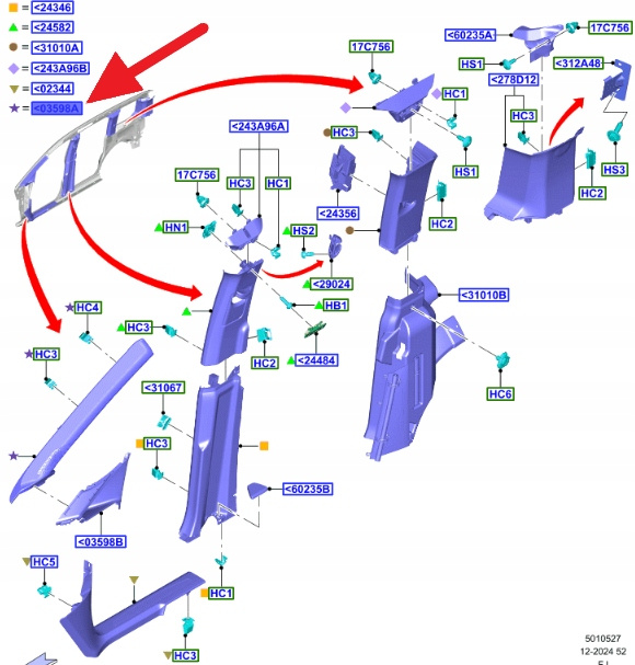 PRAWE WYKOŃCZENIE SŁUPKA A FORD CONNECT 22- 2699859 _ VWN3CA-025K90-DC3Y20