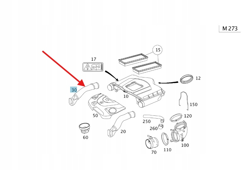 Prawy przewód dolot powietrza silnika - Benzyna M273