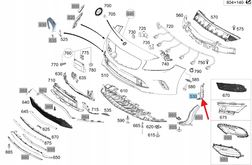 PRAWY ŚLIZG SZYNA ZDERZAKA PRZÓD MERCEDES A klasa W176 OE A1768852200
