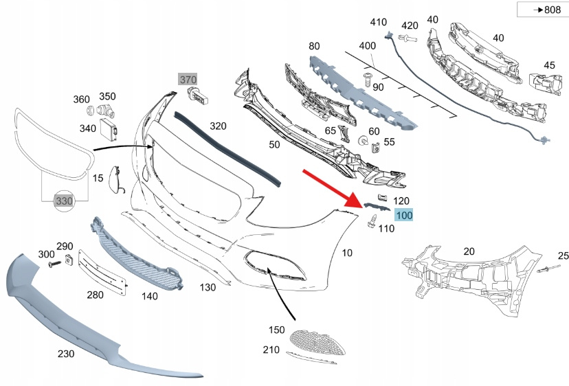 PRAWY ŚLIZG SZYNA ZDERZAKA PRZÓD MERCEDES C klasa W205 OE A2058852121