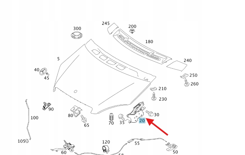 PRAWY ZAWIAS MASKI POKRYWY SILNIKA MERCEDES A klasa W169 OE A1698800228