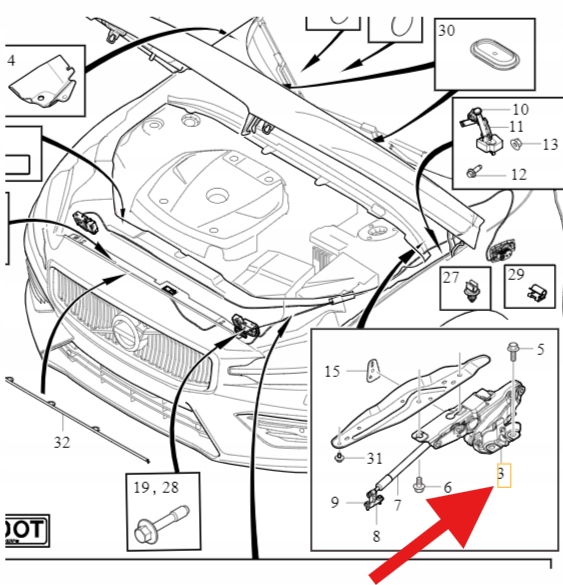 PRAWY ZAWIAS MASKI VOLVO S60 V60 2019- OE 32277086