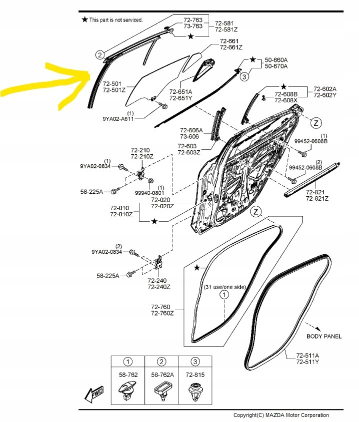 - Prowadnica (L) szyby, drzwi - Mazda 3 BP_BDMT7360ZF