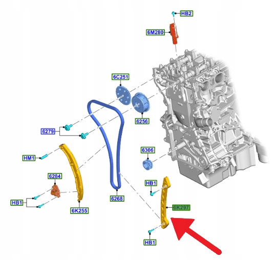 PROWADNICA ŁAŃCUCHA ROZRZĄDU 2.3 2.5 KUGA MONDEO 1358901 _ 6M8G-6K297-BA