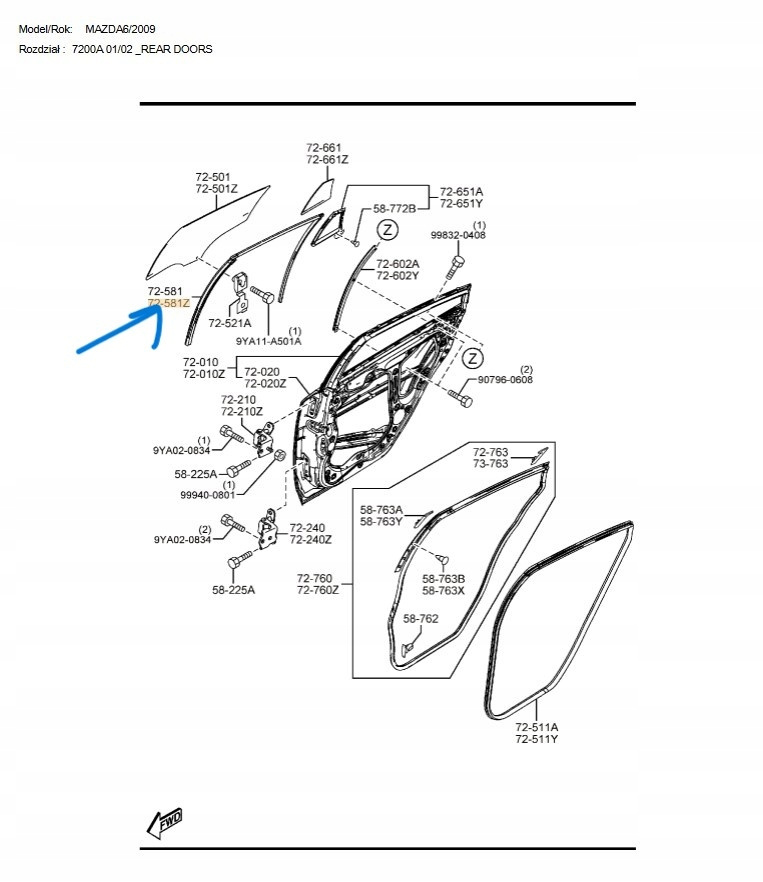 - Prowadnica lewa drzwi tylne - Mazda 6 GH 2007-2010_GS1M73605A