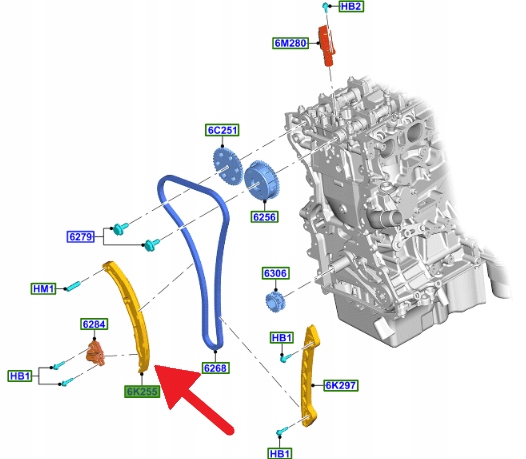PROWADNICA NAPINACZ ŁAŃCUCHA ROZRZĄDU 2.3 2.5 KUGA 1370542 _ 6M8G-6K255-AA