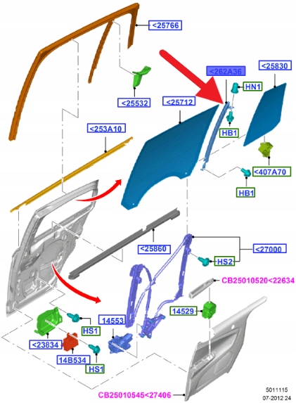 PROWADNICA SZYBY PRAWY TYŁ FORD B-MAX 2012- OE 1843815 _ AV11-R262A36-AF