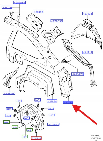PRZEDŁUŻENIE SŁUPKA D LEWY TYŁ FOCUS 2004- 2008 OE 1323267 _ 4M51-A41055-AD