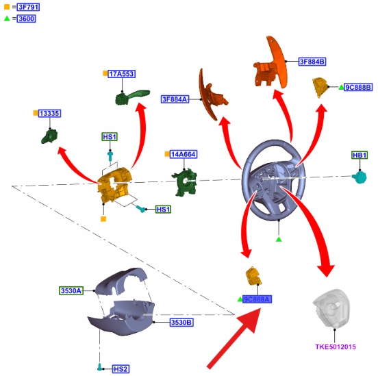 PRZEŁĄCZNIK KIEROWNICY FORD RANGER MK5 2015- OE 1945161 _ EB3T-9E740-DB3J