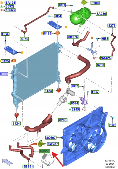 PRZEWÓD CHŁODNICY 5.0 V8 FORD MUSTANG 2015- OE 2335588 _ FR33-6B850-BD