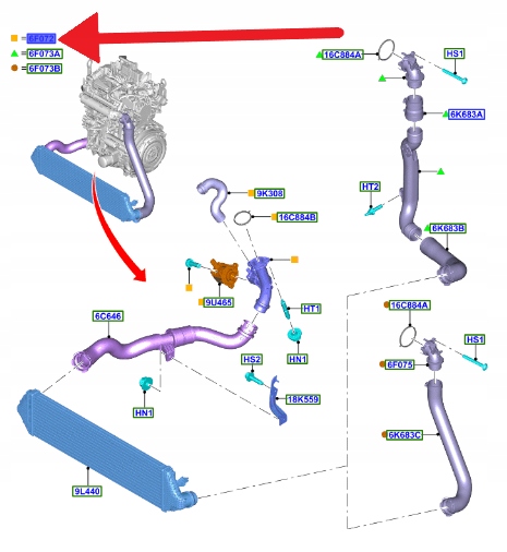 PRZEWÓD CHŁODNICY POWIETRZA 1.5 EB FORD FOCUS 19- 2420503 _ JX61-6F072-EA
