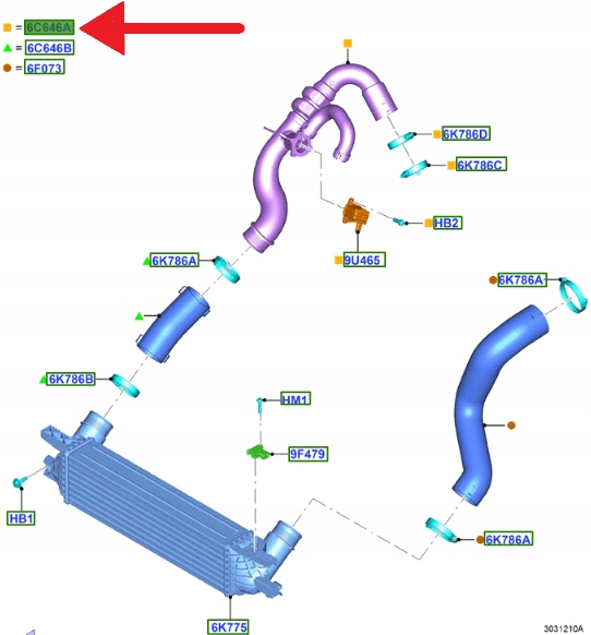 PRZEWÓD CHŁODNICY POWIETRZA 2.3 EB FORD MUSTANG 15- 2349502 _ GR3C-6C646-AC