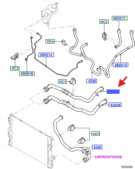 PRZEWÓD CHŁODNICY WODY 2.0 MONDEO S-MAX GALAXY 2010- 1714034 _ 9G91-8260-HB