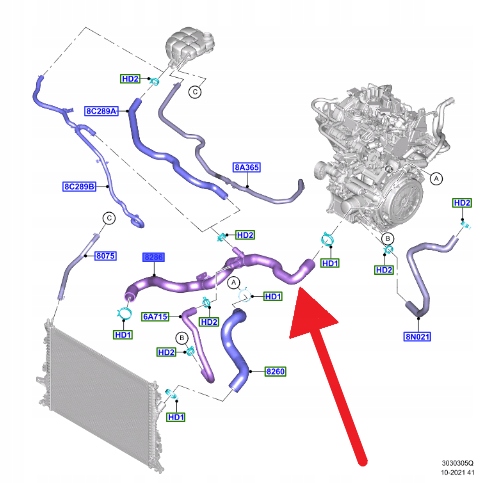 Przewód układu chłodzenia wody 1.0L EcoBoost