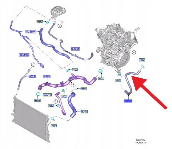PRZEWÓD CHŁODZENIA WODY 1.0 EB FORD FOCUS 2018- 2427650 _ JX61-8N021-FE