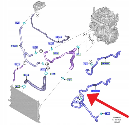 PRZEWÓD CHŁODZENIA WODY 1.5 EB FORD FOCUS 2018- 2374135 _ JX61-8N021-ED