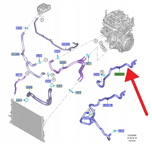 PRZEWÓD CHŁODZENIA WODY 1.5 EB FORD FOCUS 2018- 2442625 _ JX61-8N021-DC