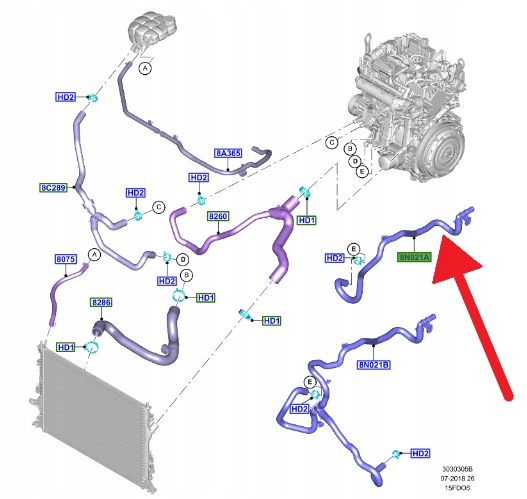 Przewód układu chłodzenia 1.5L EcoBoost - przekładnia manualna