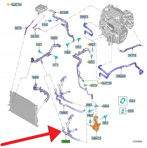 Przewód układu chłodzenia 2.0L EcoBlue - pzekładnia manualna